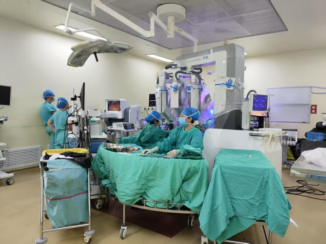 在手术过程中,该系统彻底克服了传统腔镜手术中常见的“筷子效应”,仅通过约2.6厘米的微小切口即可进入体内,并在狭窄空间中实现全周向的灵活操作。其体外机械臂在术中遥操作时保持静止,显著降低了机械臂之间或与医护人员发生碰撞的风险,从而进一步提高手术安全性。