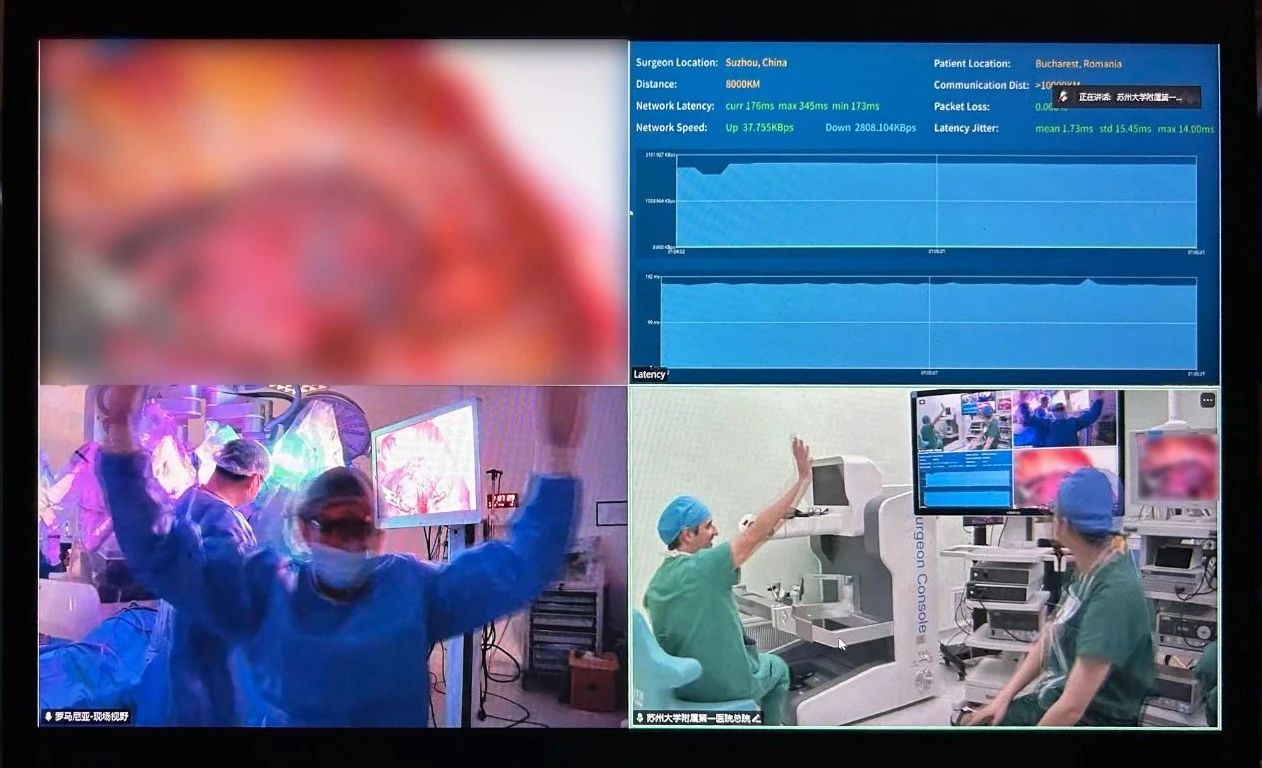 中国北京时间2025年4月2日凌晨、罗马尼亚布加勒斯特时间4月1日傍晚,一场跨越8000公里的中欧远程手术引发全球医疗界震动——国际胸外科权威专家 Diego González Rivas教授团队与苏州大学附属第一医院(以下简称“苏附一”)赵军教授团队携手合作为欧洲的一位患者成功实施肺癌右肺上叶肿瘤根治切除术,这不仅仅是中国原创的手术机器人—术锐®蛇形臂单孔机器人在欧洲临床的首秀,还是全球范围内首次由单孔手术机器人完成的胸外科远程手术,更开启了中国原创的蛇形臂手术机器人技术全球输出的新纪元。本次手术的主刀医生团队位于中国苏州,患者身处罗马尼亚布加勒斯特,罗马尼亚胸外科专家Dr. Mugurel Bosinceanu现场配合。这场手术所彰显的里程碑意义,不仅仅标志着外科微创技术的又一次突破,更标志着中国原创的高端医疗装备开始获得欧洲权威认可,开启“中国智造”向全球顶尖发达市场输出的历史性新进程。