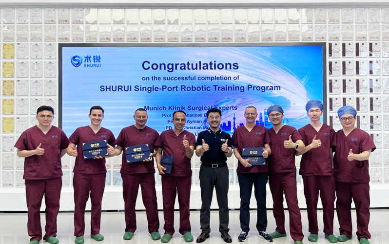 2025年6月中旬,德国慕尼黑市立医院(Munich Clinic Bogenhausen)专家团队Prof.Johannes Bodner,Prof.Ayman Agha, Prof.Christian Moser, Dr.Dominik Lobinger 访问中国,在为期四天的行程中深入了解中国自主研发的术锐®单孔腔镜手术机器人,并与上海交通大学医学院附属瑞金医院共同开展机器人手术观摩与技术交流。这一系列活动不仅是一次高水平的临床技术交流,更标志着术锐®机器人与德国顶级医疗机构在机器人微创手术领域正式开启国际临床合作。